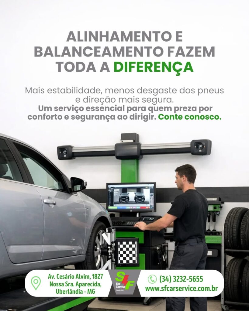 • Alinhamento e balanceamento, para garantir estabilidade e durabilidade dos pneus.